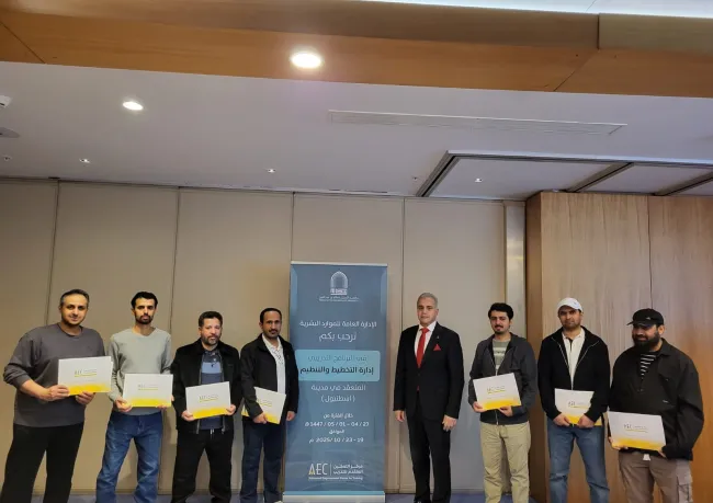 اختتمت الإدارة العامة للموارد البشرية يوم الخميس الموافق 01/05/1447هـ، الدورة التدريبية الخارجية التي أُقيمت في مدينة إسطنبول، بعنوان: "إدارة التخطيط والتنظيم"، والتي استمرت لمدة خمسة أيام، وجاءت استكمالًا للبرامج الموجهة للمرشحين ضمن خطة التدريب السنوية المعتمدة.