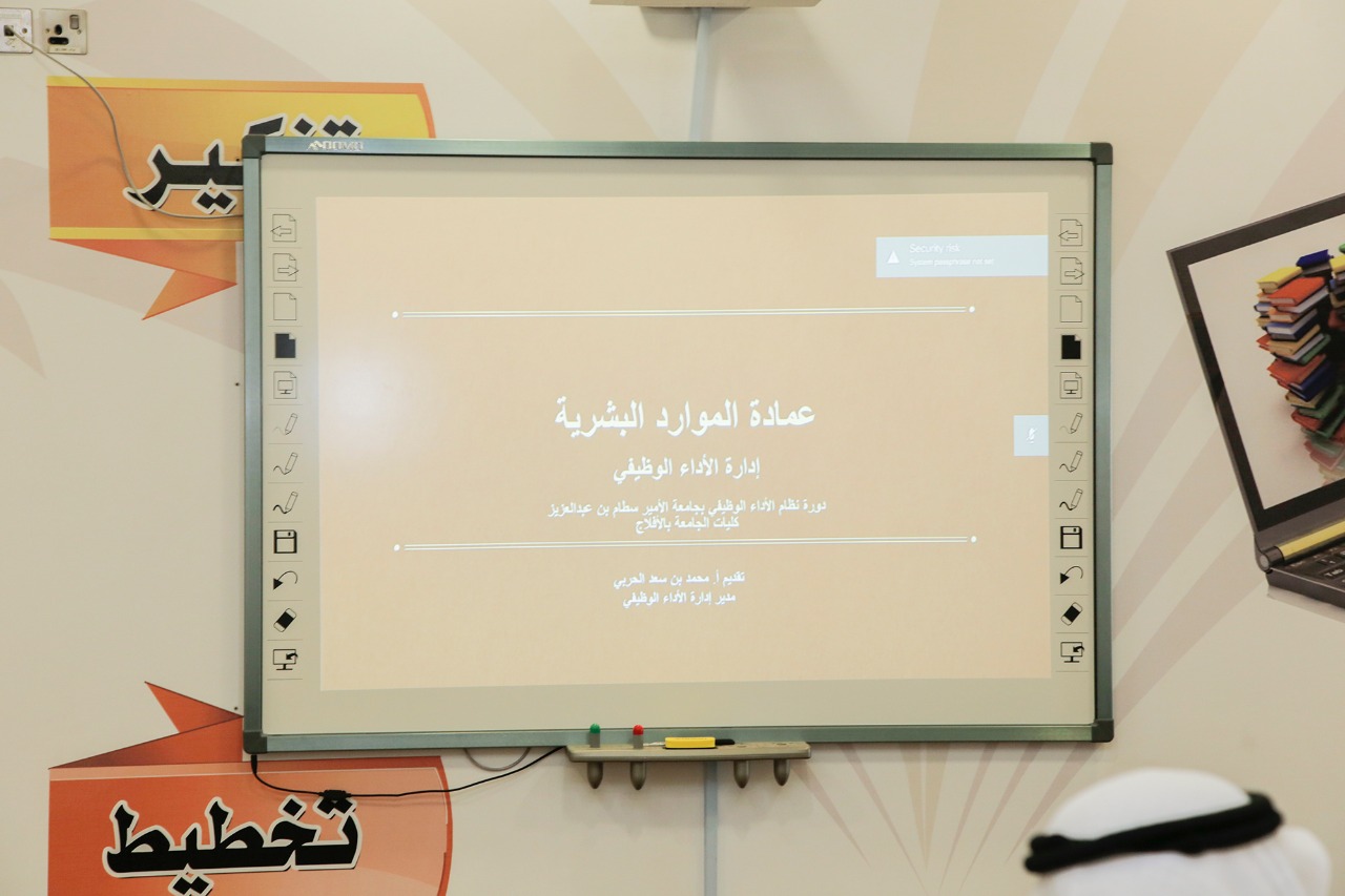 في إطار عملية التهيئة الشاملة لتطبيق نظام إدارة الأداء الوظيفي نظمت عمادة الموراد البشرية ممثلة بإدارة الأداء الوظيفي يوم الأربعاء الموافق 19-1-1441هـ دورة تدريبية عن إدارة الأداء الوظيفي استهدفت القيادات الاكاديمية والإدارية بكليات الأفلاج لتعريفهم بأهداف النظام الجديد ومزايا تطبيقه وطريقة التعامل مع نماذجه.