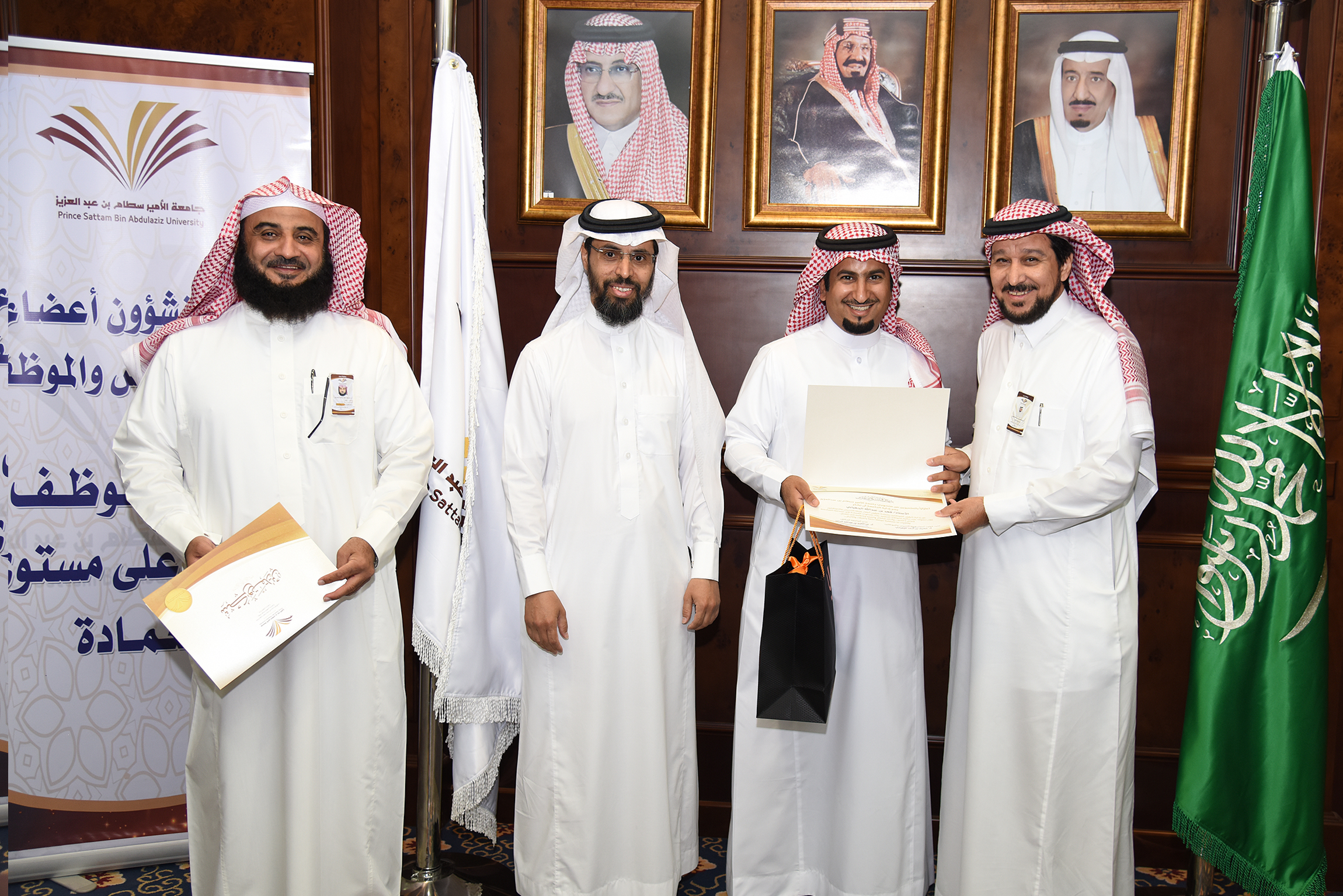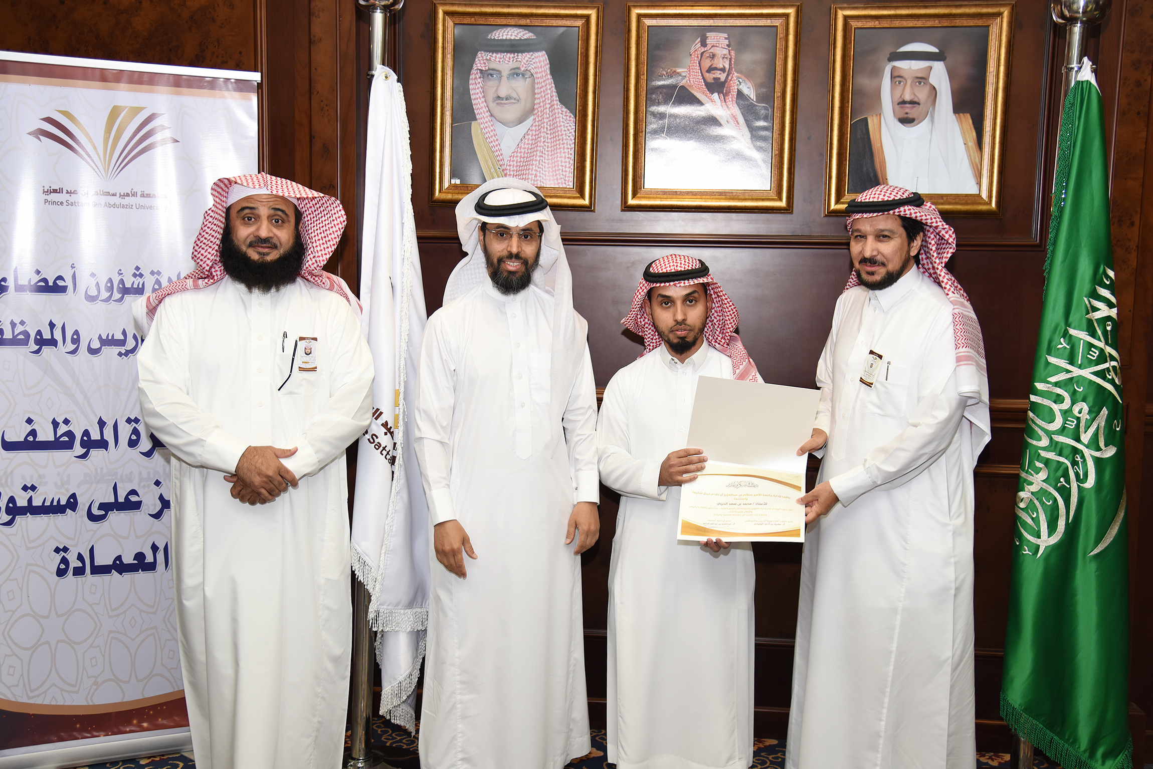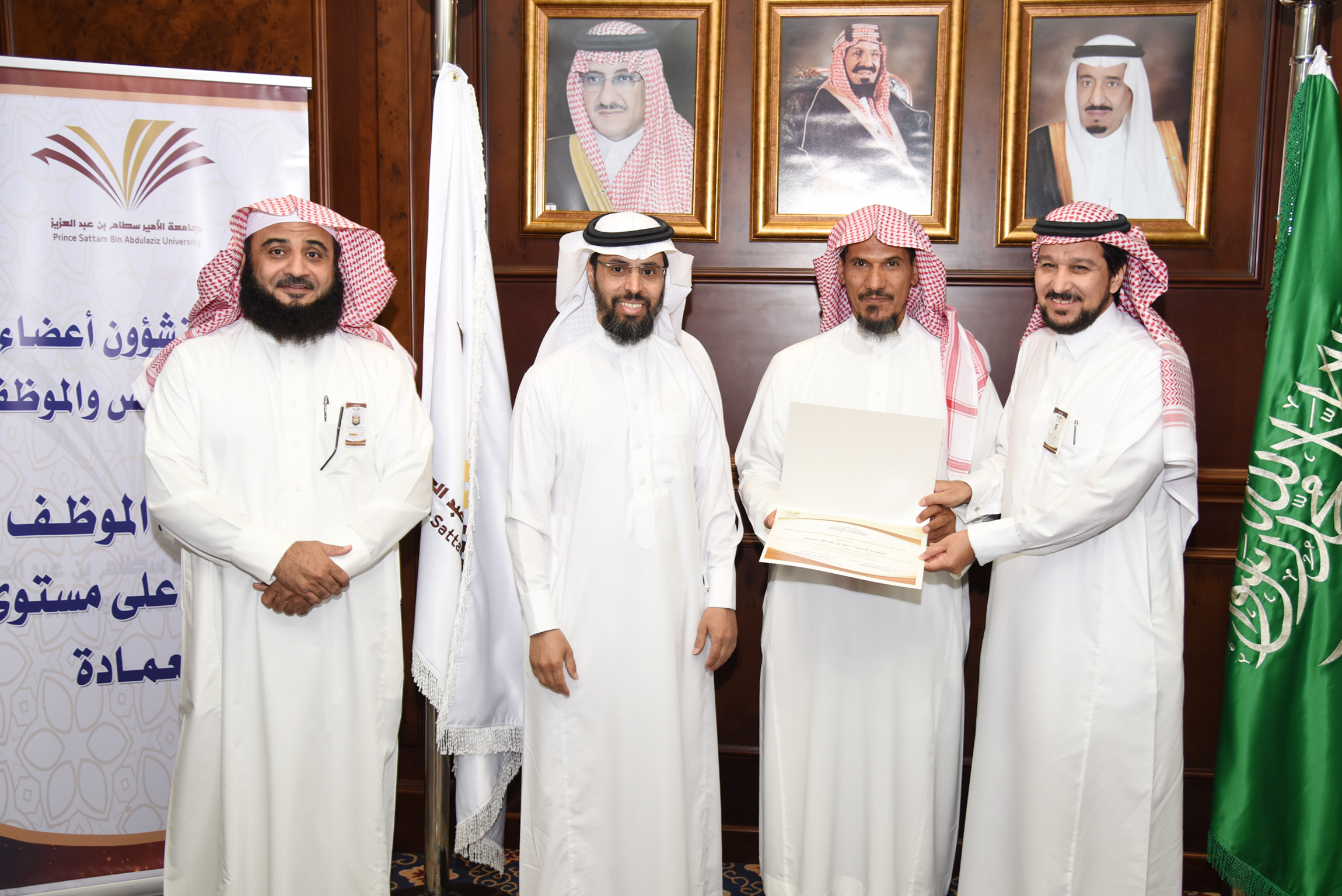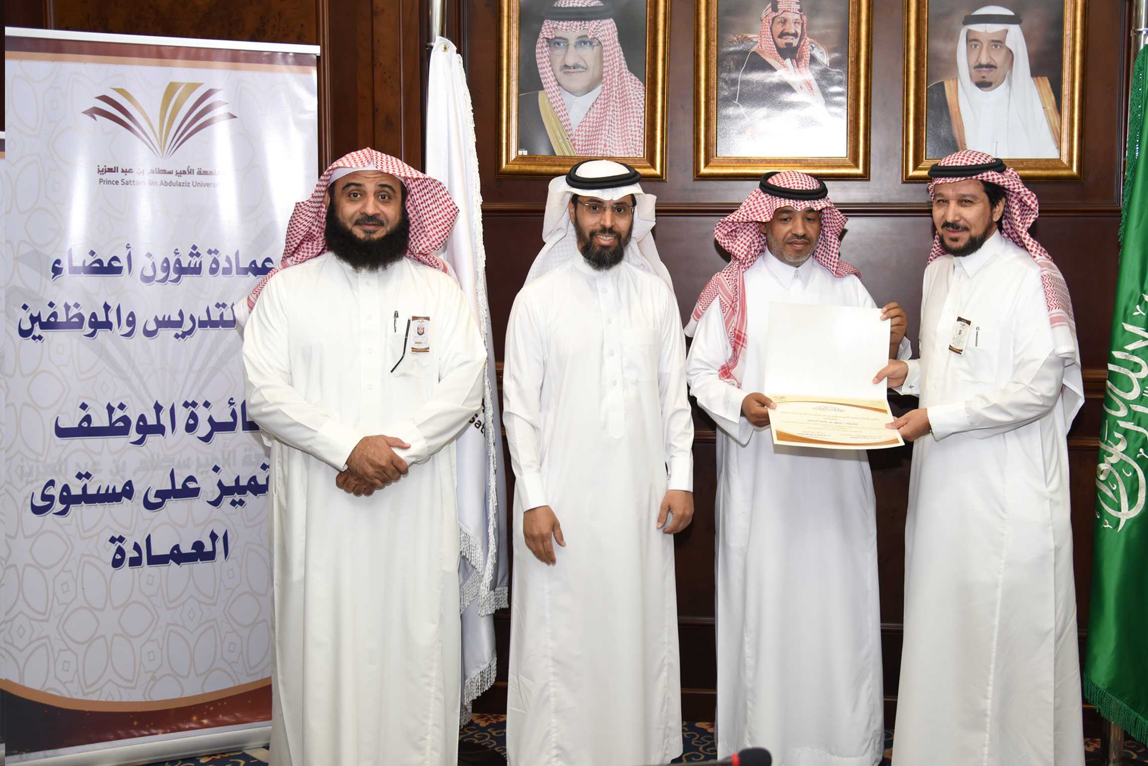 كتب الخبر:محمد بن سعد الحربي برعاية كريمة من سعادة مدير جامعة الأمير سطام بن عبدالعزيز المكلف أد.عبدالعزيز بن عبدالله الحامد، وبحضور سعادة عميد شؤون أعضاء هيئة التدريس والموظفين أد. مشرف بن أحمد الزهراني، كرمت العمادةالحائزين على جائزة الموظف المتميز بنسختها السادسة وهم : 1- الأستاذ / فهد بن عبدالله الحقباني من إدارة شؤون الموظفين 2- الأستاذ / صالح بن سالم الصيعري من إدارة شؤون أعضاء هيئة التدريس. 3- ومن القسم النسوي الأستاذة / منيره بنت فهد المسعود.وتم تكريم زميلنا المتقاعد الأستاذ/ ثروي بن ودي العنزي نظير خدمته الطويلة وانجازاته المشهودة.وتم تكريم الأستاذ/ علي بن صويع القحطاني من إدارة شؤون الموظفين نظير جهوده الاستثنائية في الفترة السابقة.وكرم سعادة مدير الجامعة المكلف مدراء الإدارات بالعمادة تقديراً لإنجازات إداراتهم خلال هذه السنة، وكذلك تم تكريم سكرتارية العمادة.وذكر عميد شؤون أعضاء هيئة التدريس والموظفين سعادة أد. مشرف بن أحمد الزهراني أن الهدف من الجائزة هو خلق بيئة عمل مثالية تشجع الموظفين على الانجاز والتطوير لينعكس ذلك على جودة الخدمات التي تقدمها العمادة، وأكد سعادته أن ذلك يأتي في إطار سعي دائم نحو التميز والتحسين المستمر للخدمات، وأضاف بأن العمادة حريصة على استمرار الجائزة من خلال معايير دقيقة وموحدة على مستوى العمادة، حيث يتم تحديد فترات لتقييم أداء الموظفين بناءً على تلك المعايير ،ثم الإعلان عن أسماء الموظفين المتميزين .كما القى سعادة وكيل العمادة للتطوير والجودة الدكتور عبدالله الشهري كلمة بهذه المناسبة تطرق فيها الى معايير الجائزة، ومسيرة تطورها.وألقت سعادة وكيلة العمادة للقسم النسوي كلمة شكرت فيها قيادات الجامعة لرعايتهم الدائمة للمناشط التي تشجع على الارتقاء والابداع في الأداء.وفي ختام الحفل شكر مدير الجامعة جميع منسوبي العمادة وعلى رأسهم عميدها سعادة أد. مشرف بن أحمد الزهراني وسعادة وكيل العمادة للتطوير والجودة الدكتور عبدالله بن علي الشهري ومدراء الإدارات بالعمادة، وجميع الموظفين ، وأبدى سعادته اعجابه بكل ما تقدمه العمادة من جهود واضحة وملموسة على مستوى الجامعة، كما هنأ الموظفين الحاصلين على الجائزة ، وتمنى لهم حياة وظيفية حافلة بالعطاء والإنجاز.أسماء مدراء الادارات المكرمون:1- ناصر بن عبدالله المجلي (مدير عام شؤون أعضاء هيئة التدريس والموظفين).2- حمود بن بادي الحربي (مدير شؤون الموظفين).3- محمد بن حمود العاطفي (مدير شؤون أعضاء هيئة التدريس)4- راشد بن عبدالله القحطاني (مدير تنمية الموارد البشرية).5- صالح بن علي المسعود (مدير إدارة الرواتب والنفقات).6- متعب بن سالم الدخيل (مدير علاقات شؤون أعضاء هيئة التدريس والموظفين)7- محمد بن سعد الحربي (مدير إدارة التطوير والجودة).أسماء موظفي سكرتارية العمادة:1- مطلق بن عبدالله السبيعي (مدير مكتب عميد شؤون أعضاء هيئة التدريس والموظفين)2- بدر بن عبدالرحمن بن صليح (سكرتير مدير عام شؤن أعضاء هيئة التدريس والموظفين)3- عبدالملك بن سليمان العنزي (سكرتير كيل العمادة للتطوير والجودة)أسماء مديرات وحدات القسم النسوي:1- مستورة بنت سعدون العتيبي (مدير شؤون عضوات هيئة التدريس)2- نجاح بنت مطر العنزي (مديرة شؤون الموظفات)3- أمل بنت ناصر العتيبي (مديرة تنمية الموارد البشرية)4- مريم بنت راشد الدليمي (مديرة علاقات شؤون عضوات هيئة التدريس والموظفات)