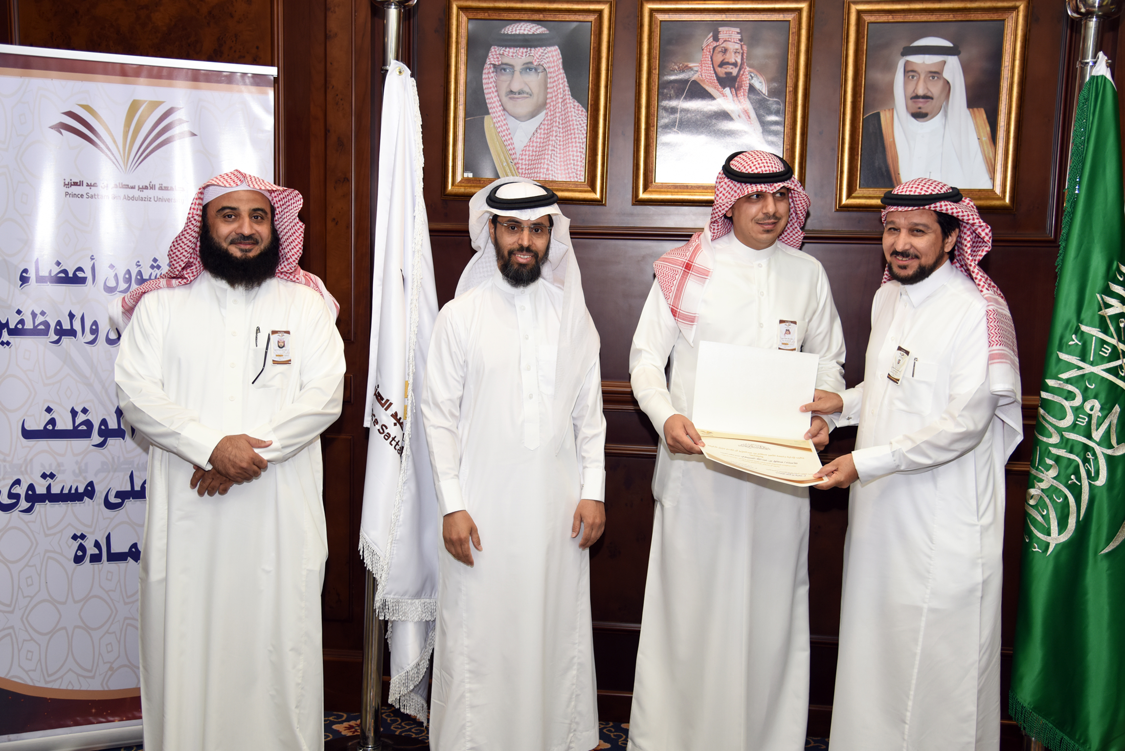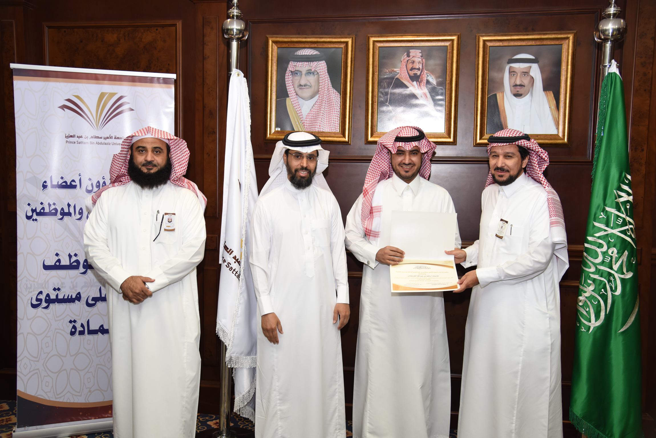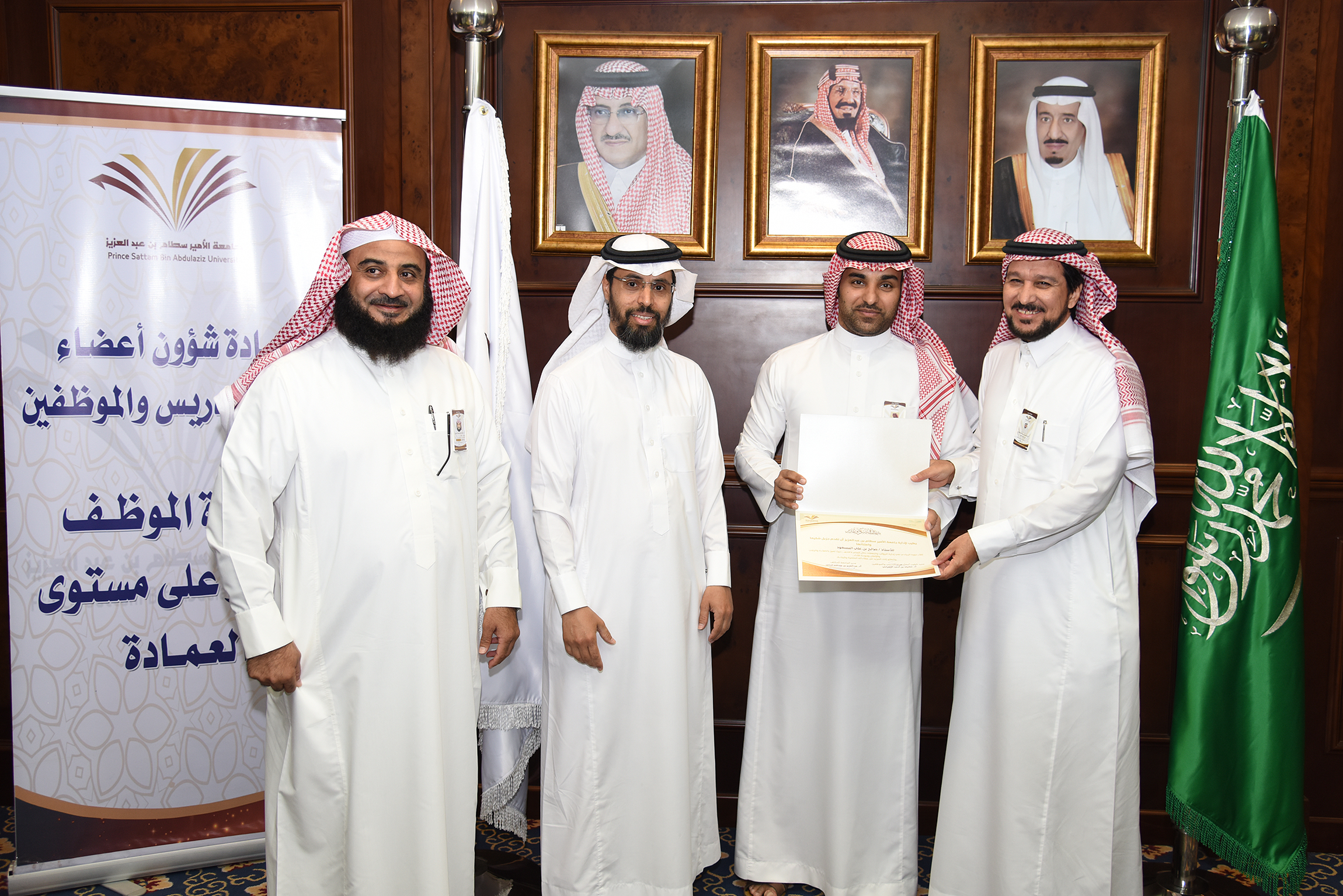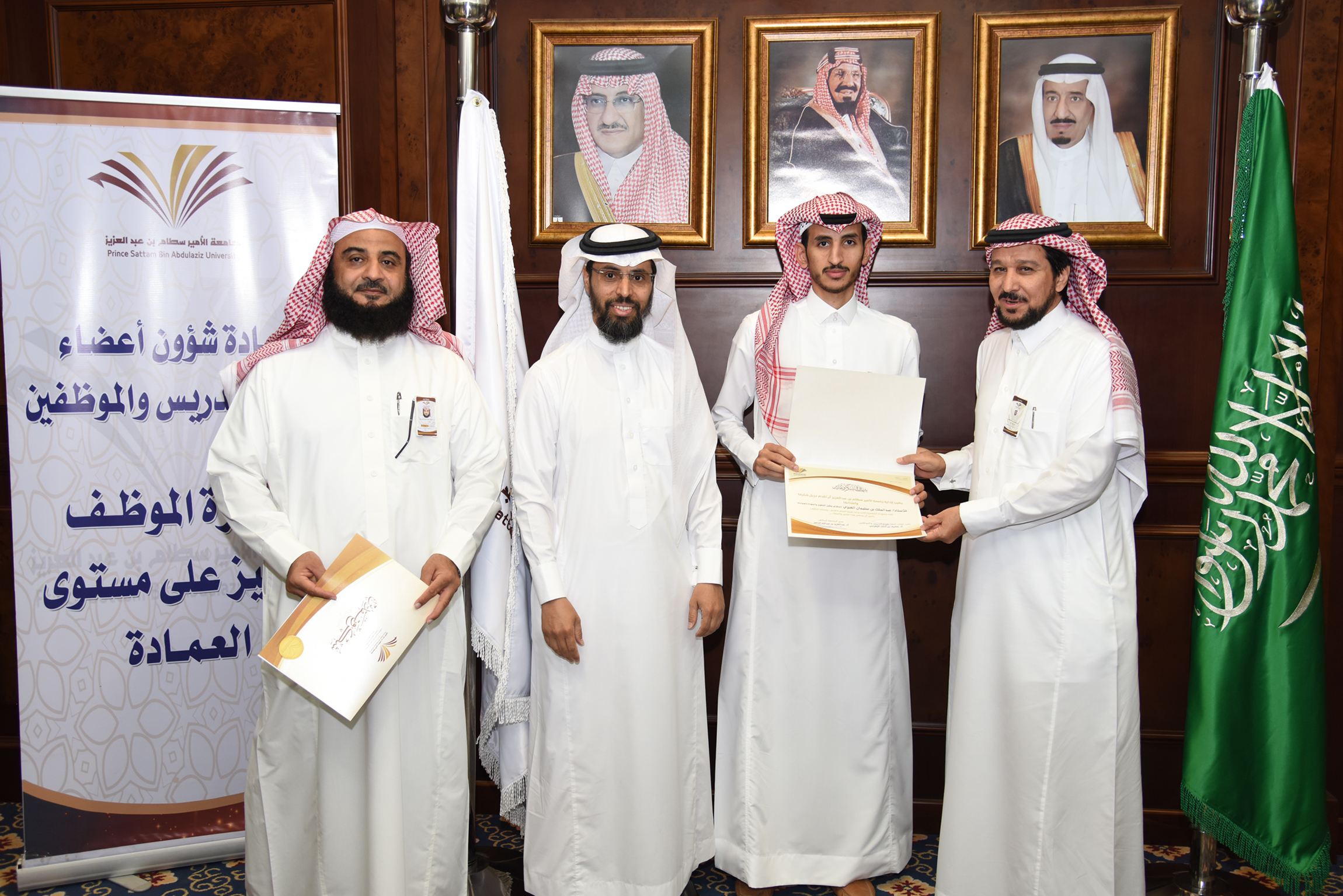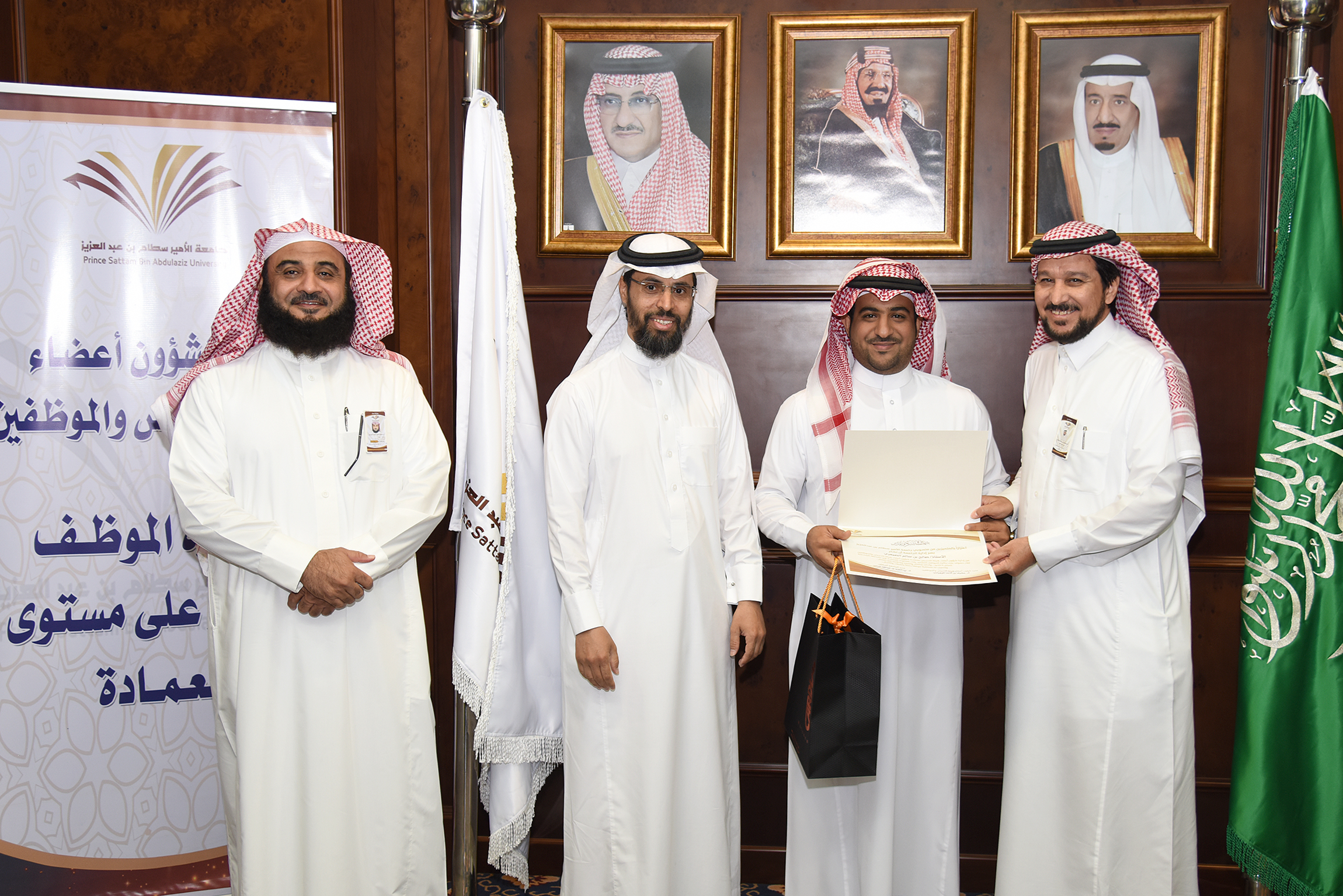 كتب الخبر:محمد بن سعد الحربي برعاية كريمة من سعادة مدير جامعة الأمير سطام بن عبدالعزيز المكلف أد.عبدالعزيز بن عبدالله الحامد، وبحضور سعادة عميد شؤون أعضاء هيئة التدريس والموظفين أد. مشرف بن أحمد الزهراني، كرمت العمادةالحائزين على جائزة الموظف المتميز بنسختها السادسة وهم : 1- الأستاذ / فهد بن عبدالله الحقباني من إدارة شؤون الموظفين 2- الأستاذ / صالح بن سالم الصيعري من إدارة شؤون أعضاء هيئة التدريس. 3- ومن القسم النسوي الأستاذة / منيره بنت فهد المسعود.وتم تكريم زميلنا المتقاعد الأستاذ/ ثروي بن ودي العنزي نظير خدمته الطويلة وانجازاته المشهودة.وتم تكريم الأستاذ/ علي بن صويع القحطاني من إدارة شؤون الموظفين نظير جهوده الاستثنائية في الفترة السابقة.وكرم سعادة مدير الجامعة المكلف مدراء الإدارات بالعمادة تقديراً لإنجازات إداراتهم خلال هذه السنة، وكذلك تم تكريم سكرتارية العمادة.وذكر عميد شؤون أعضاء هيئة التدريس والموظفين سعادة أد. مشرف بن أحمد الزهراني أن الهدف من الجائزة هو خلق بيئة عمل مثالية تشجع الموظفين على الانجاز والتطوير لينعكس ذلك على جودة الخدمات التي تقدمها العمادة، وأكد سعادته أن ذلك يأتي في إطار سعي دائم نحو التميز والتحسين المستمر للخدمات، وأضاف بأن العمادة حريصة على استمرار الجائزة من خلال معايير دقيقة وموحدة على مستوى العمادة، حيث يتم تحديد فترات لتقييم أداء الموظفين بناءً على تلك المعايير ،ثم الإعلان عن أسماء الموظفين المتميزين .كما القى سعادة وكيل العمادة للتطوير والجودة الدكتور عبدالله الشهري كلمة بهذه المناسبة تطرق فيها الى معايير الجائزة، ومسيرة تطورها.وألقت سعادة وكيلة العمادة للقسم النسوي كلمة شكرت فيها قيادات الجامعة لرعايتهم الدائمة للمناشط التي تشجع على الارتقاء والابداع في الأداء.وفي ختام الحفل شكر مدير الجامعة جميع منسوبي العمادة وعلى رأسهم عميدها سعادة أد. مشرف بن أحمد الزهراني وسعادة وكيل العمادة للتطوير والجودة الدكتور عبدالله بن علي الشهري ومدراء الإدارات بالعمادة، وجميع الموظفين ، وأبدى سعادته اعجابه بكل ما تقدمه العمادة من جهود واضحة وملموسة على مستوى الجامعة، كما هنأ الموظفين الحاصلين على الجائزة ، وتمنى لهم حياة وظيفية حافلة بالعطاء والإنجاز.أسماء مدراء الادارات المكرمون:1- ناصر بن عبدالله المجلي (مدير عام شؤون أعضاء هيئة التدريس والموظفين).2- حمود بن بادي الحربي (مدير شؤون الموظفين).3- محمد بن حمود العاطفي (مدير شؤون أعضاء هيئة التدريس)4- راشد بن عبدالله القحطاني (مدير تنمية الموارد البشرية).5- صالح بن علي المسعود (مدير إدارة الرواتب والنفقات).6- متعب بن سالم الدخيل (مدير علاقات شؤون أعضاء هيئة التدريس والموظفين)7- محمد بن سعد الحربي (مدير إدارة التطوير والجودة).أسماء موظفي سكرتارية العمادة:1- مطلق بن عبدالله السبيعي (مدير مكتب عميد شؤون أعضاء هيئة التدريس والموظفين)2- بدر بن عبدالرحمن بن صليح (سكرتير مدير عام شؤن أعضاء هيئة التدريس والموظفين)3- عبدالملك بن سليمان العنزي (سكرتير كيل العمادة للتطوير والجودة)أسماء مديرات وحدات القسم النسوي:1- مستورة بنت سعدون العتيبي (مدير شؤون عضوات هيئة التدريس)2- نجاح بنت مطر العنزي (مديرة شؤون الموظفات)3- أمل بنت ناصر العتيبي (مديرة تنمية الموارد البشرية)4- مريم بنت راشد الدليمي (مديرة علاقات شؤون عضوات هيئة التدريس والموظفات)