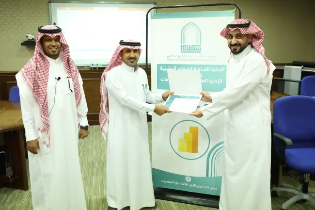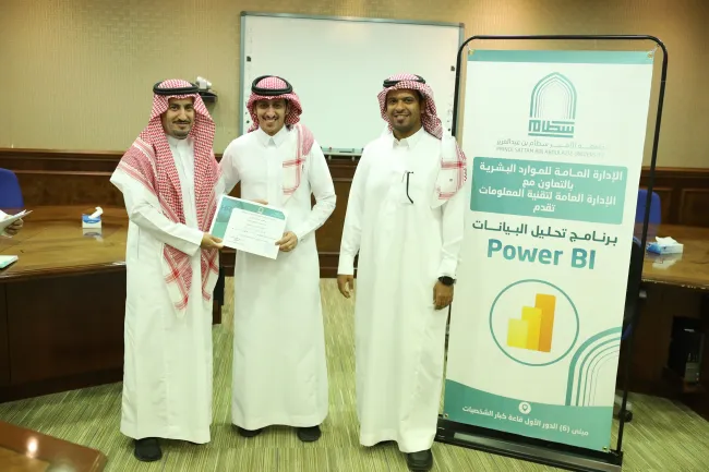 The General Administration of Human Resources, in cooperation with the General Administration of Information Technology, organized the training program (Power BI Data Analysis), which targeted training 45 employees from various university sectors over four days. The aim was to develop their skills and enhance their capabilities in data analysis to help them perform their assigned tasks effectively. The General Administration of Human Resources expressed its gratitude and appreciation to the course instructor, His Excellency the Director General of Information Technology, Mr. Walid bin Mohammed Al-Sulaiteen. It also extended thanks to all trainees for their commitment and constructive interaction, which contributed to the program's success, hoping that the acquired skills would be a step toward greater creativity and efficiency in the work environment.