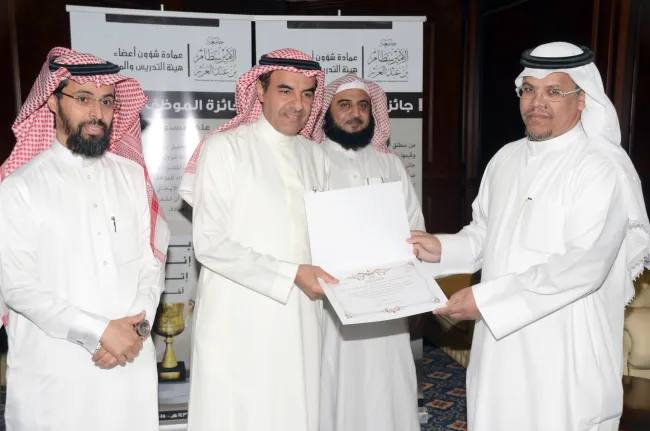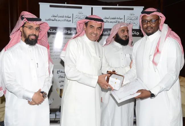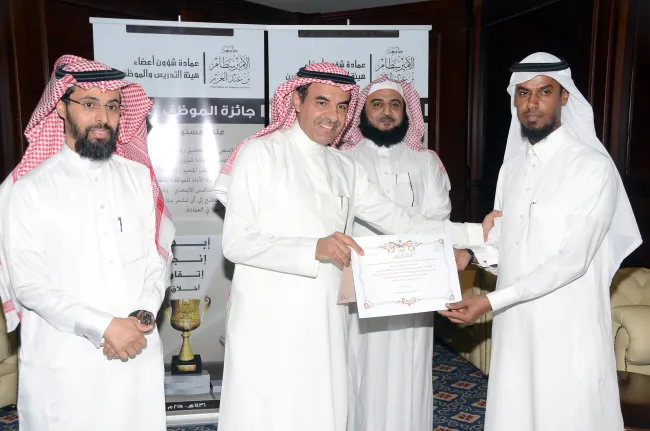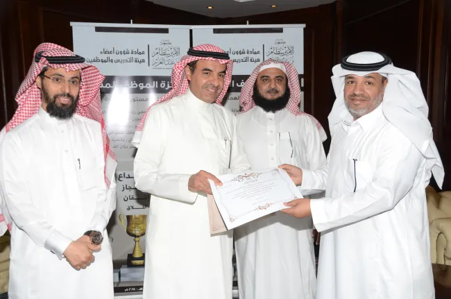 كما تم كذلك تكريم الموظفين الحائزين على جائزة الموظف المتميز بنسختها الرابعة للعام الجامعي 1435/1436 هـ وهم :