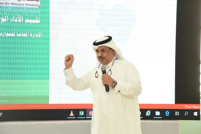 برعاية كريمة من معالي مدير الجامعة أد. عبدالعزيز بن عبدالله الحامد وبمشاركة سعادة وكيل الجامعة د. عبدالله بن عبدالله الجمعة قامت عمادة شؤون أعضاء هيئة التدريس والموظفين بإعداد وتنفيذ ورشتي تدريب وذلك لتهيئة منسوبي الجامعة على تطبيق اللائحة الجديدة لإدارة الأداء الوظيفي الصادرة من وزارة الخدمة المدنية للجهات الحكومية.عقدت الورشة الأولى يوم الإثنين الموافق 27-6-1440هـ بمبنى المناسبات في المدينة الجامعية، وكان المستهدف فيها مدراء الإدارات ومدراء الكليات.وعقدت الورشة الثانية يوم الثلاثاء الموافق 28-6-1440هـ في مبنى المناسبات وكان المستهدف فيها رؤساء الأقسام الأكاديميين من أعضاء هيئة التدريس.قدم الورش التدريبية سعادة الأستاذ: محمد بن ربيع العيسى مستشار الموارد البشرية بوزارة العدل.وتم تقسيم جميع الورش إلى تسعة أنشطة وكان من أهمها الشرح النظري للمدرب والأنشطة العملية.وتخلل الورش عرض فيديوهات تعريفية متعددة عن النظام الجديد للأداء ونظام موارد الذي يشغل النظام الإلكتروني للأداء الوظيفي في الجامعة.شارك في إعداد ورش التدريب رئيس لجنة تهيئة تطبيق نظام الأداء في الجامعة سعادة أ.د. مبارك بن فهيد القحطاني.وسعادة عميد شؤون أعضاء هيئة التدريس والموظفين أ.د. مشرف بن أحمد الزهراني.ووكيل العمادة الدكتور ماجد الشيباني.وسعادة الأستاذ: حمود بن بادي الحربيوسعادة الأستاذ: محمد بن حمود العاطفيوسعادة الأستاذ: فهد بن عبدالله الحقبانيوسعادة الأستاذ: نايف بن حمود القحطانيوسعادة الأستاذ: محمد بن سعد الحربي وشكر رئيس لجنة التهيئة في نهاية الورش التدريبية المنظمين من عمادة شؤون أعضاء هيئة التدريس والموظفينمن مكتب العميد|:مطلق السبيعي.عبده كعبي ومن إدارة شؤون الموظفين علي صويع القحطاني.محمد علي المحسن.على نايف الحربي.محمد عبدالعزيز المتعب.عبدالله فرحان العنزي. ومن إدارة شؤون أعضاء هيئة التدريس:إبراهيم العنزي.عبدالله آل داوودنايف العمرومعاذ الحربي ومن إدارة الأداء الوظيفي:علي ردن المطيري.فهد خالد الدوسري.أفنان على العسيم. على المجهودات الكبيرة والرائعة التي كانت بعد توفيق الله سبحانه وتعالى سبباً في نجاح تنظيم الورش.وفي سياق متصل بتهيئة منسوبي الجامعة على نظام الأداء الجديد تقوم العمادة بجهود بارزة بالتعريف بالنظام الجديد من خلال خطة تغيير تنفذها على أرض الواقع من جهود اعلامية توعوية، ورسائل نصية وايميلات اضافة إلى التدريب العملي على النظام الجديد.ويعكس هذا الاهتمام حرص الجامعة على زيادة وعي منسوبيها بنظام الأداء الجديد وثقافة الإدارة بالأهداف والتعريف باللائحة الجديدة وطريقة صياغة الأهداف الذكية ومصادر الأهداف، ومتابعة مستوى تحقيق الأهداف.والجامعة من خلال ذلك تريد أن تكون احدى الجهات التي تساهم في تحقيق رؤية المملكة الطموحة (2030) لرفع قدرات مواردها البشرية وكفاءتها بهدف تقديم أرقى الخدمات التعليمية والإدارية والوصول إلى مرحلة الصدارة والريادة.