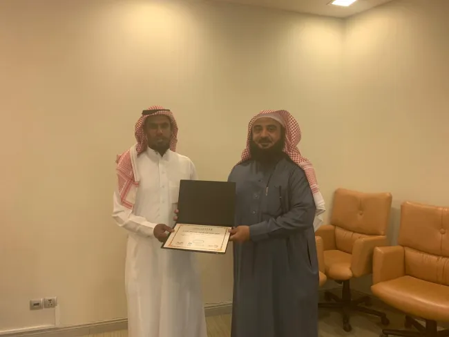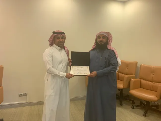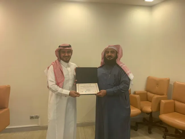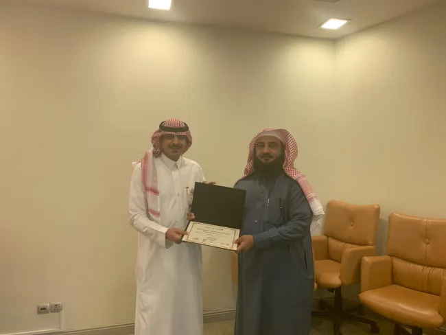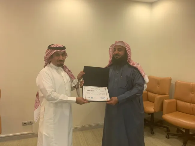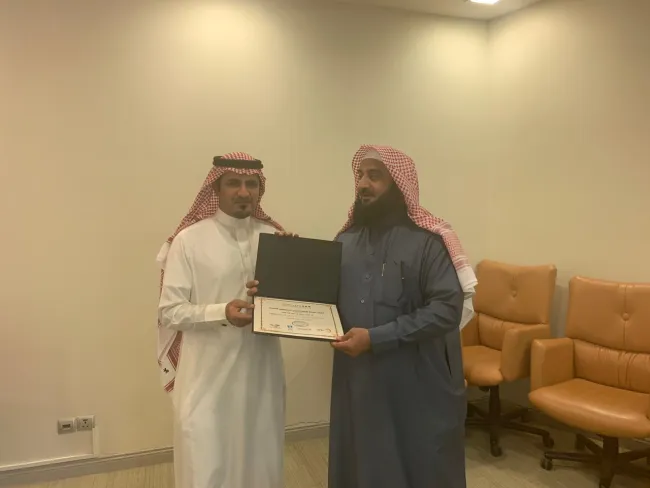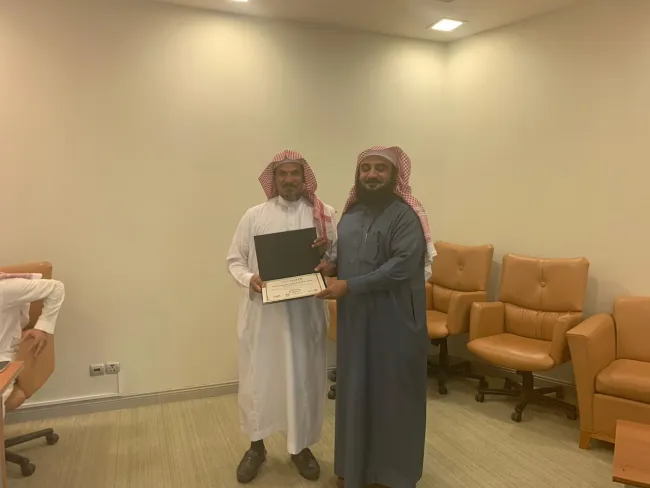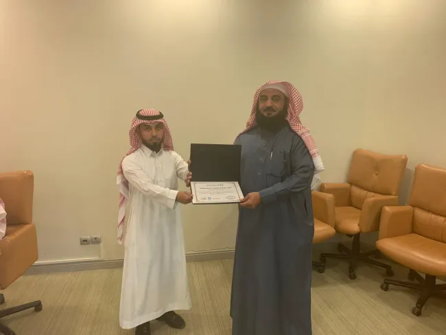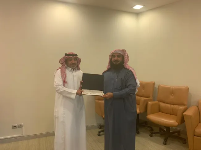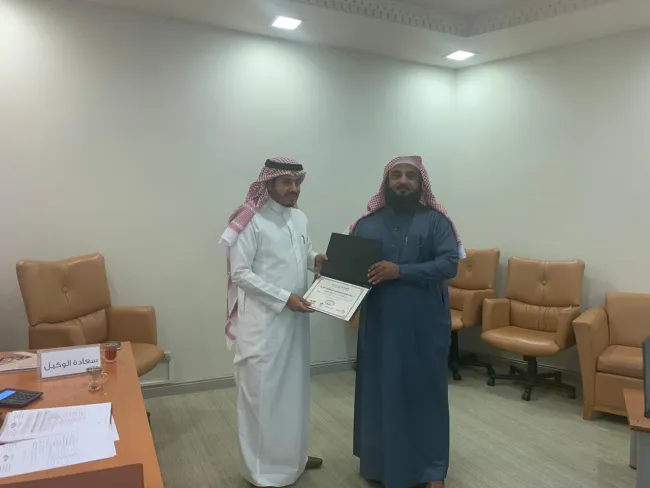 وفي نهاية الاجتماع سلم سعادة العميد مدراء الإدارت في العمادة شهادة اجتياز البرنامج التدريبي لنظام تخطيط الموارد الحكومية.